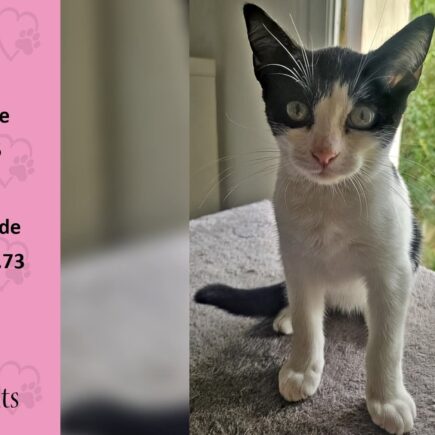 Je vous présente Abela jeune chatte d’environ 2 ans trouvée dans un camping. Elle est gentille mais un peu timide. Elle est testée SIDA leucose et teigne, stérilisée, identifiée et vaccinée. Il faut donc prévoir une participation aux frais de 250 € ( Facilités de paiement possibles). Pour plus de renseignements et venir la voir …