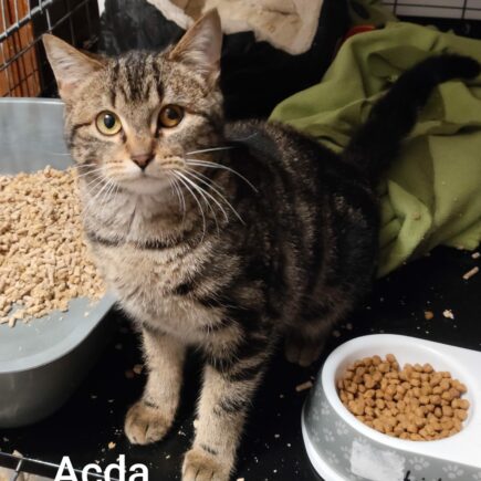 ADOPTÉE Bonjour les amis de Biscachats je m’appelle Acda et je vais avoir bientôt 1an. Malgré cette année passée derrière le Macdo à traîner avec mes frères et soeurs je suis gentille et j’aime les caresses. Je suis testée SIDA leucose et teigne ,stérilisée et tatouée . Donc si je vous plaît et que vous …