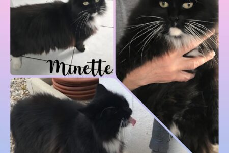 Bonjour, je suis Minette une gentille chatte orpheline !!!! J’ai 12 ans bientôt et j’ai perdu mes 2 parents alors je cherche un foyer chaleureux pour passer ma retraite.Je suis un peu timide quand je ne connais pas mais je viendrai sur vos genoux quand nous aurons fait connaissance. Je suis habituée à sortir il …