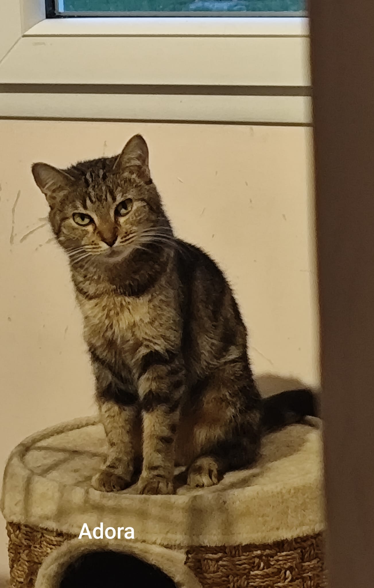 ADOPTÉE Une petite chatte très joueuse, très coquine, elle recherche toujours une présence, et aussi celle des enfants donc très câline. Elle reste craintive s’il y a des bruits inhabituels ou si on s’approche trop vite d’elle. Elle joue avec les chats adultes et ne se laisse pas impressionner lorsque l’un d’eux cherche à l’intimider. …