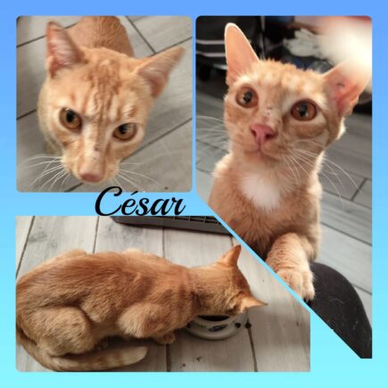ADOPTE Qui va craquer pour ce beau »rouquin » !!! Il s’appelle César , il a 1 an , très sociable et câlin, très proche de l’humain, assez vif et propre : Un extérieur sera un plus. Il est testé (sida, leucose), identifié, stérilisé et vacciné. Il faut donc prévoir une participation aux frais de 250 …